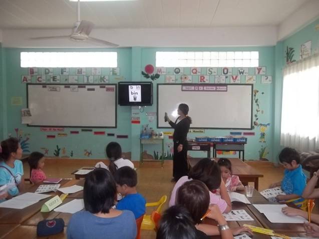 Min Li Laoshi (Teacher Min Li from Shanghai) giving instructions in Mandarin Chinese cum English and Thai. She facilitates activities for Chinese Language learning. The school staff, students, and the seminar participants are very lucky to have her in our school. Suppawit School goes "Trilingual" in this sense.